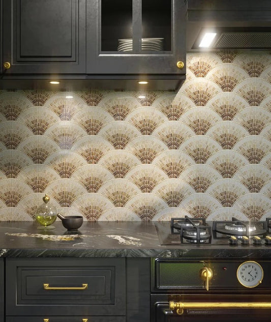 Artistic Tile Fan Club Cream Ombre With Brass Mosaic