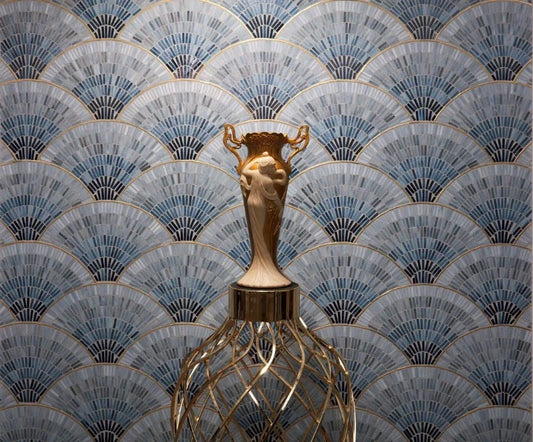 Artistic Tile Fan Club Blue Ombre With Brass Mosaic