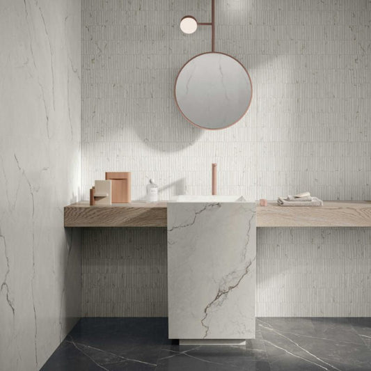 Calacatta Remora Porcelain Tile in Quartzite Luna Melody Deco 24" x 48"