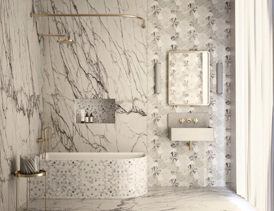 Artistic Tile Bianco Carrara Marble Mosaic Broken Joint 3.0cm Polished