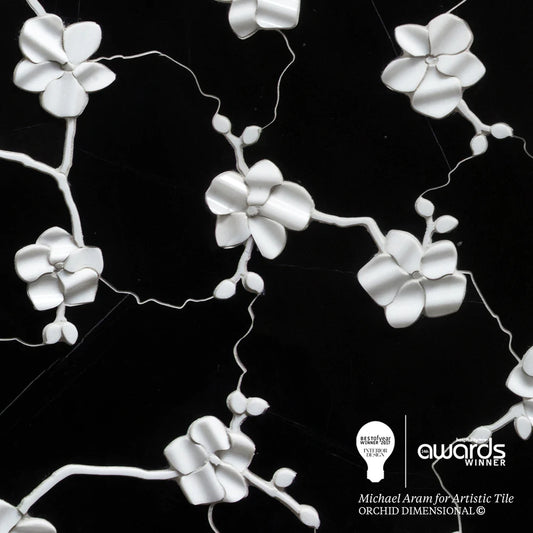 Artistic Tile Orchid Dimensional Bianco Carrara Marble WJ Mosaic