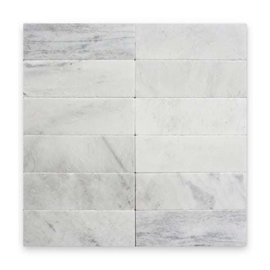 Pietra Collection in Perla Bianca Tumbled Marble Tile 4" x 12"