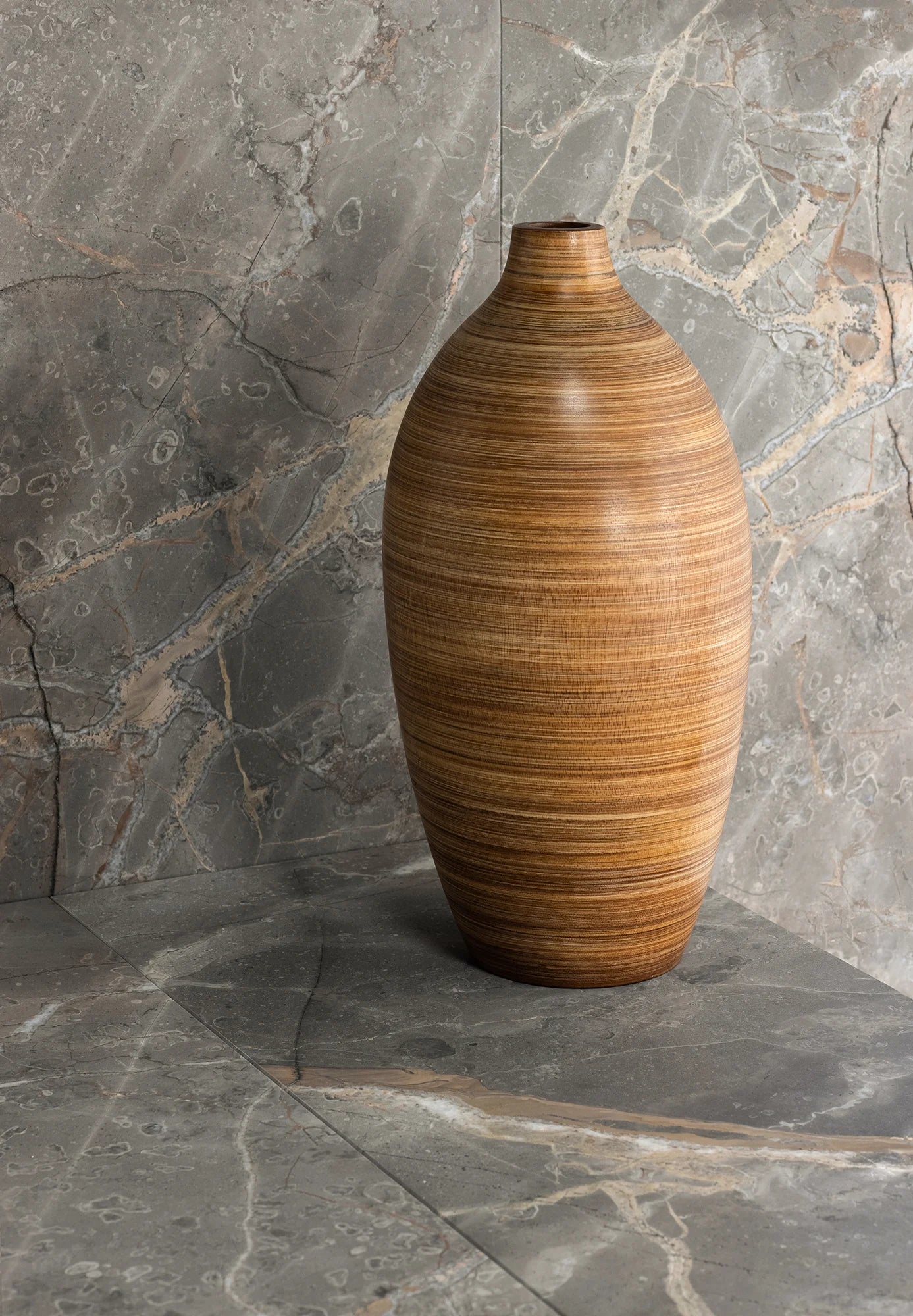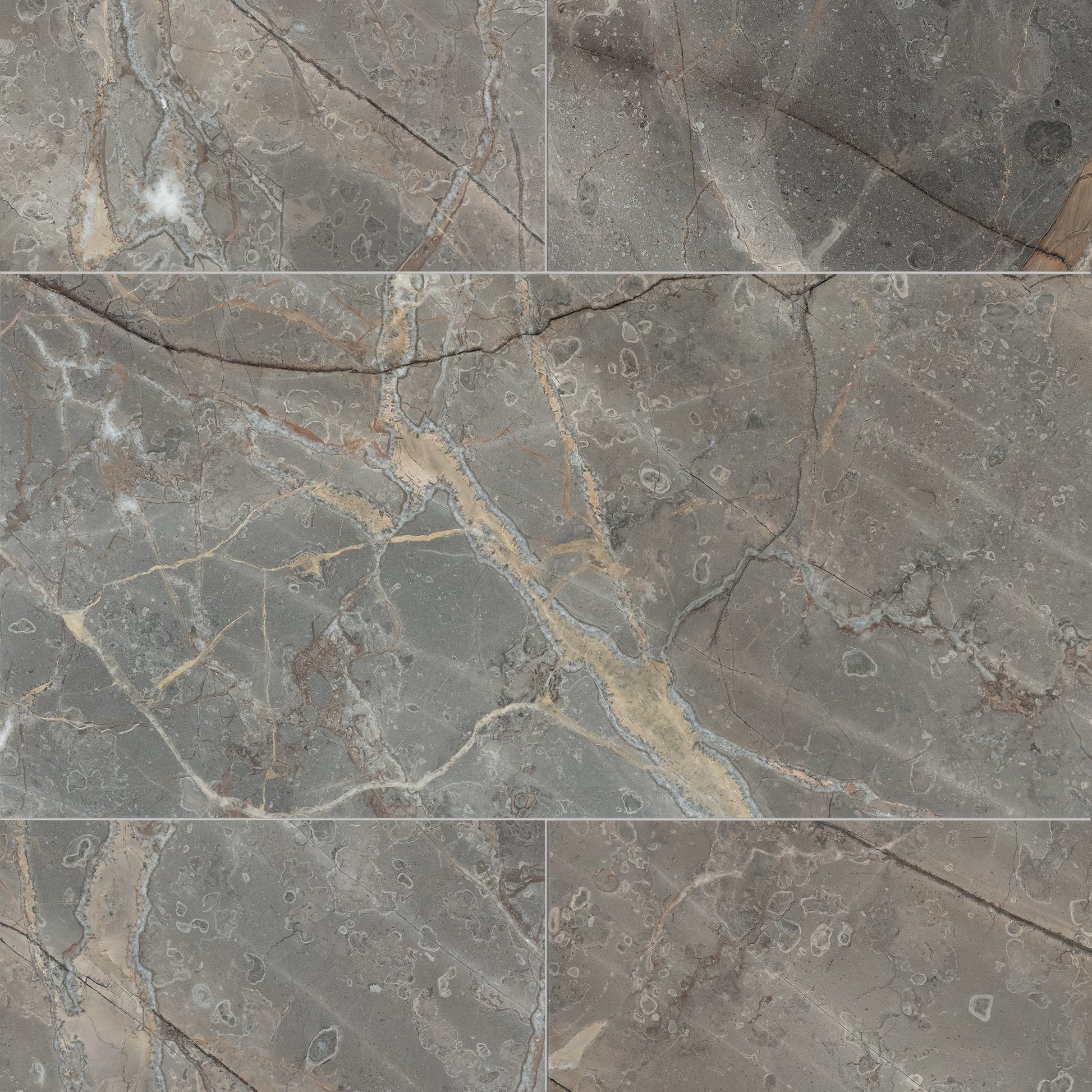 This classic marble is named “wildflower” in Italian, and is sourced from Italy. Softly flowing infusions of warm apricot move across a ground of rich pearl grey, creating a surface redolent both of Art Deco and Mid-Century Modern design. The visual movement of the veining in this Tuscan marble is especially intriguing. Available in a ¾" (2cm) polished slab and 12" × 24" honed field tile.