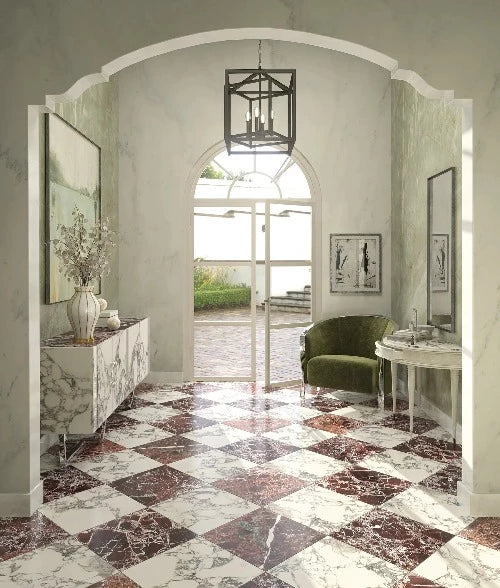 Breccia Capraia is a warm white Italian marble with dramatic purple and dark green veining. Sourced from the same quarry as Calacatta Gold, Statuario, and Arabescato, Breccia Capraia's unique look adds a distinguished touch to both residential and commercial designs.