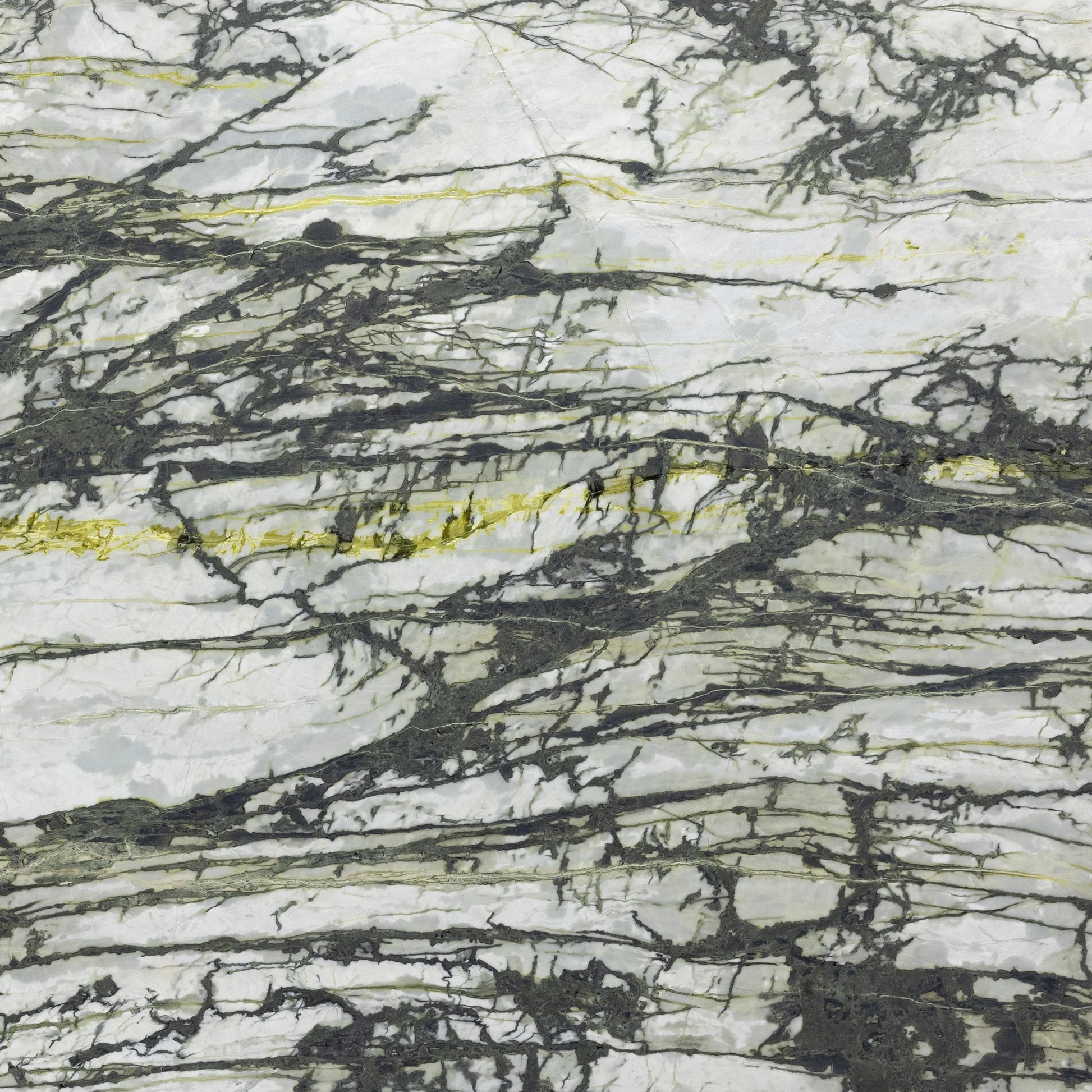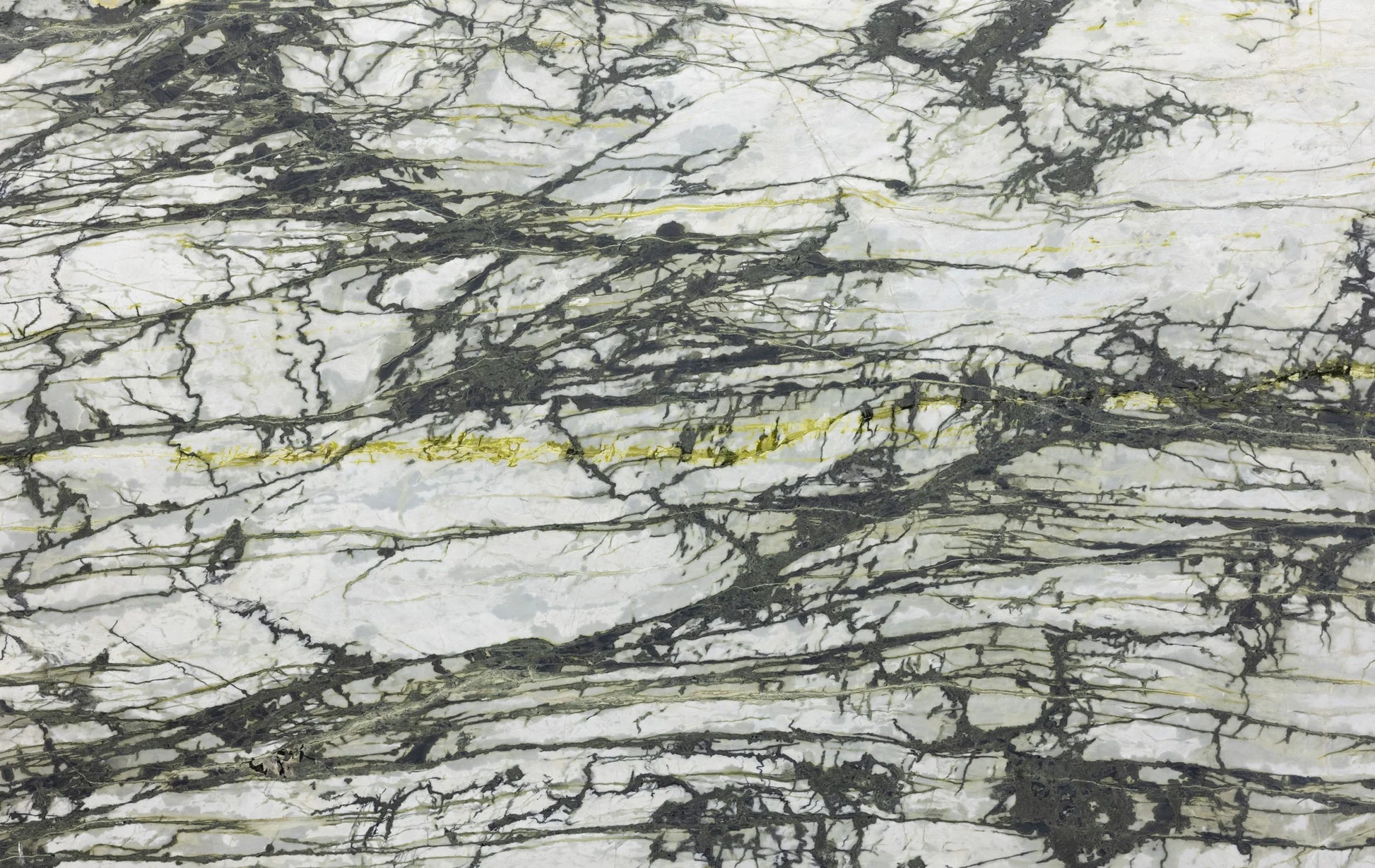 This fascinating slab features a dazzling variety of green veins – bright to deep – intertwining with inky black, playing across the characteristic milky-white background so prized by those who love Calacatta marbles. Calacatta Verde offers the luxury project an alluring but discreet flare of color, retaining a classically neutral appeal enhanced by the occasional sparkle of golden pyrite. Stocked in polished and honed finishes, both 2cm.