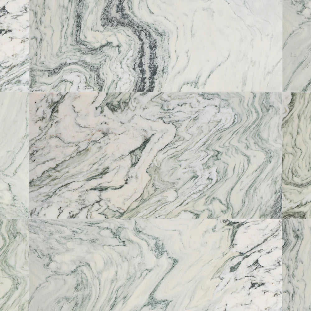 The exquisite Cipollino marble, widely used throughout antiquity for its unique ornamental quality, is quarried in the Apuan Alps in northern Italy. Its unique green-beige coloring, with streaks and swirls of white and grey, evoke the fine layering of an onion, which yields its name: Cipollino, or “little onion,” in Italian. We’re stocking a fine selection of Cipollino in honed 12”x24” tiles and 3/4” (2CM) slabs.