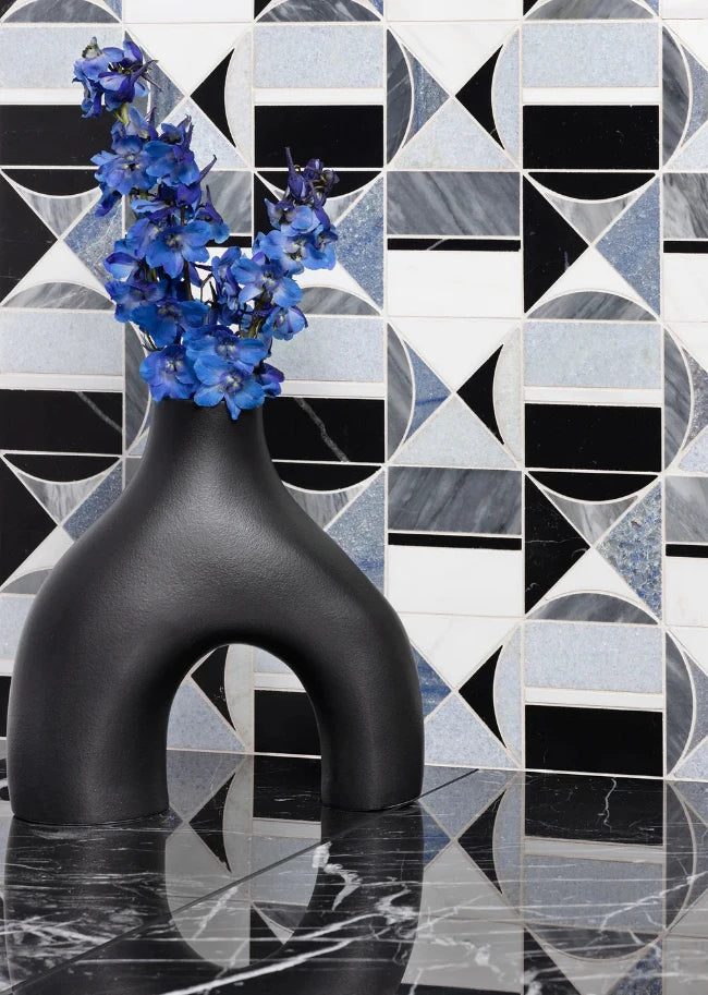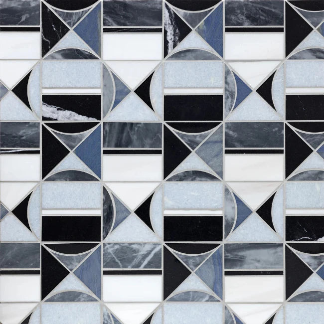 Artistic Tile Hidden Circles Blue Marble Waterjet Mosaic