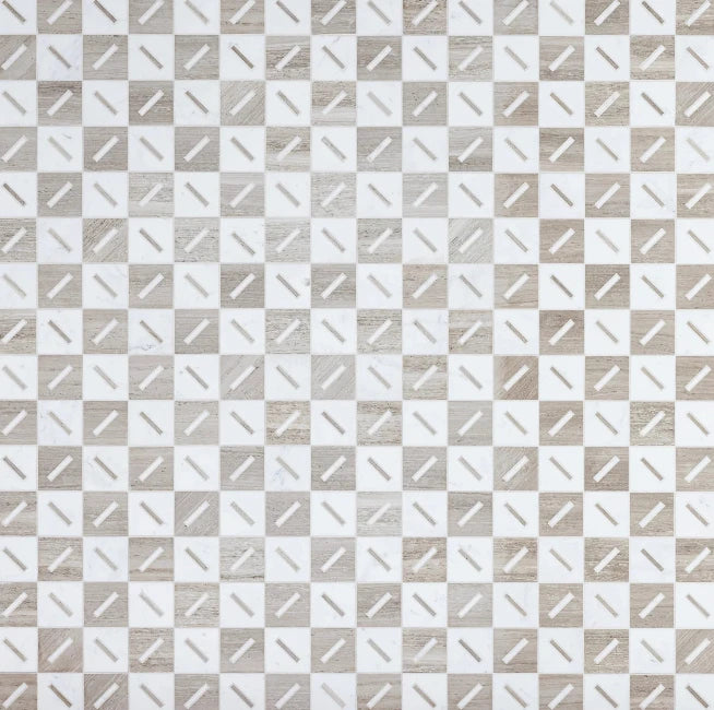Game On, a bold return to basic shapes with just the right amount of the unexpected, is a collection that is inherently Michelle Gerson. Game On features four joyfully geometric designs; Spot On, Slide, Zip, and Stix, each available as stocked mosaics in an array of colorways, and fully customizable in a range of sizes that includes mosaic form and large format tile. Please allow 30 days for production.