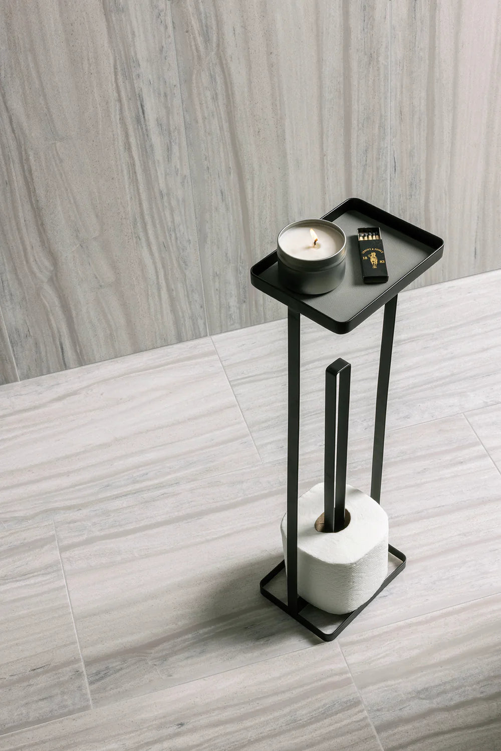 Quarried by the banks of the Nestos River, close to the shores of the Aegean Sea in Greece, this linear marble features softly flowing waves of pale rose-hued beige and silvery taupe. Stocked in 12" x 24", honed.