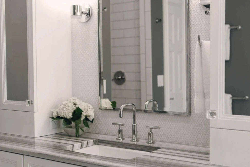 Simultaneously fresh and retro, the applications for these penny round stone mosaics are limitless. Circular tiles are a staple of residential and commercial design; our Studs are unique in their smaller size and our use of classic stone in their creation. A traditional yet relaxed aesthetic.