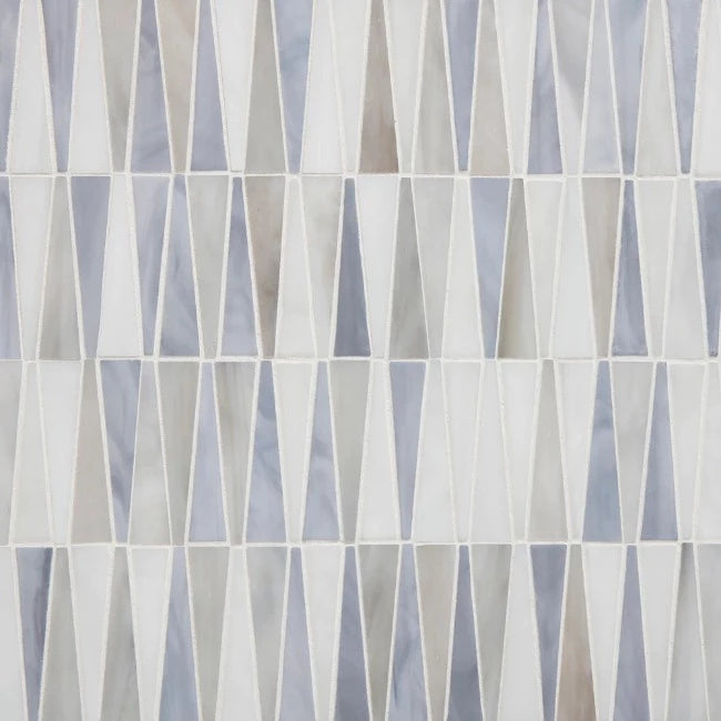 Tambourine Traps shakes up the Jazz Glass collection with an ensemble of colors and textures presented in a rhythmic and angular pattern. Experience the signature Gloss quality of our traditional Jazz Glass, or mix it up with the dynamic Mixed Finish Matte Tumbled and Gloss version. Beautiful on its own or can be paired with coordinating field tile and mosaics.