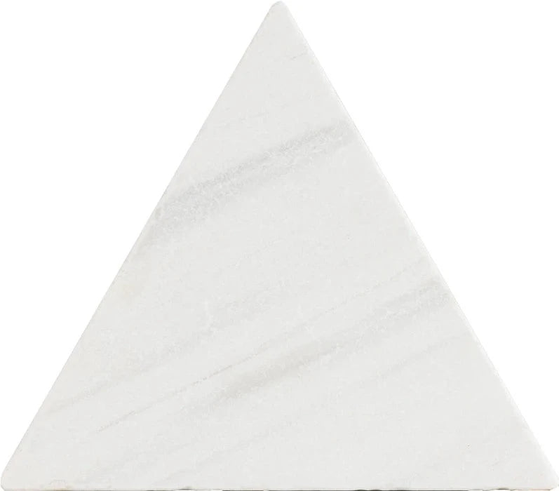 A versatile collection of nominal 11" tumbled triangular stone tiles sold individually in a selection of six different stone varieties, these equilateral triangles are great building blocks for a truly unique space. Choose from Bianco Dolomiti, Calacatta Gold, White Sand, Afyon Grey, Nero, or Vanilla Onyx, and craft your own story. Notable for slightly soft edges and subtly rounded corners, these Tumbled Triangles have an understated natural aesthetic that feels right at home.