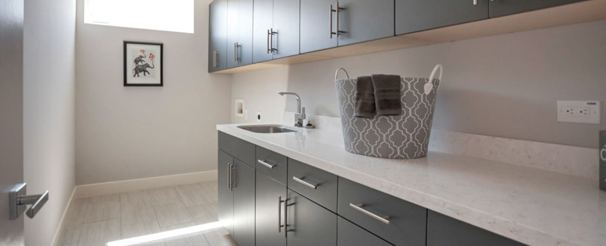 Amoto White is cool white quartz with faint grey detailing throughout. Its subtle pattern gives the appearance of natural marble, adding an organic element to any installation. This natural quartz surface, is a blend of nature and technology. It consists of up to 94% quartz, one of the hardest minerals in nature. Color controlled quartz is blended together with technologically advanced polymers. Quartz surfaces are ultra durable, resistant to scratches and chipping, plus its dense composition makes it highly resistant to staining. Used for interior surfaces only. 122-706