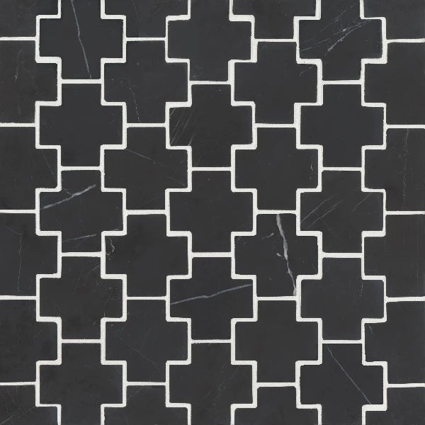 Renoir Nero Marquina Honed Marble Cross Mosaic