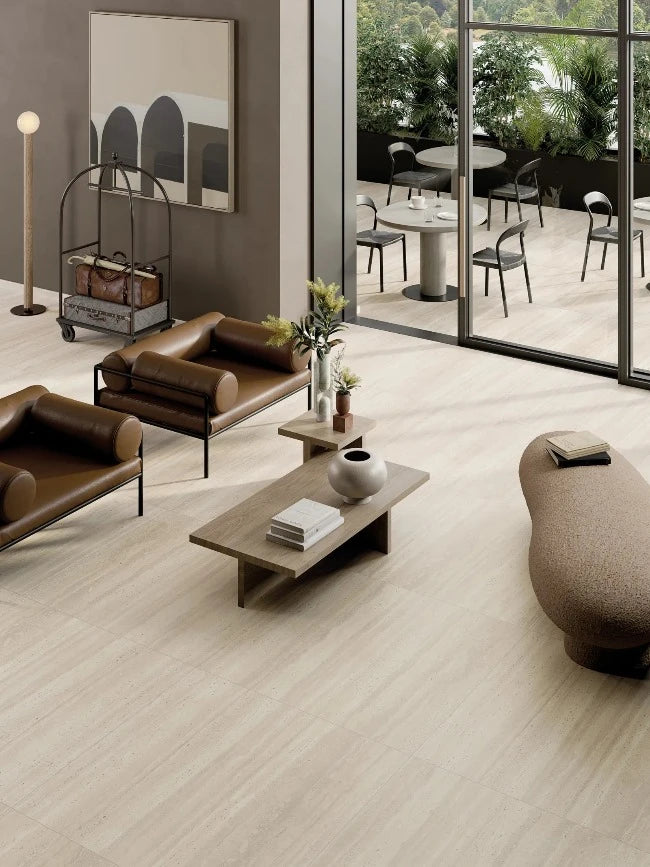 Transport yourself to the heights of Italian luxury with the Toscana Antica Porcelain Tile Collection. Crafted with Satin 3D Glaze technology, this series boasts a timeless travertine look in Cream, Ivory, and White. Create seamless indoor/outdoor designs with 24" x 48" Satin and R11 finishes, complemented by 48" x 48" size, decos, bullnose, and mosaic options. 020